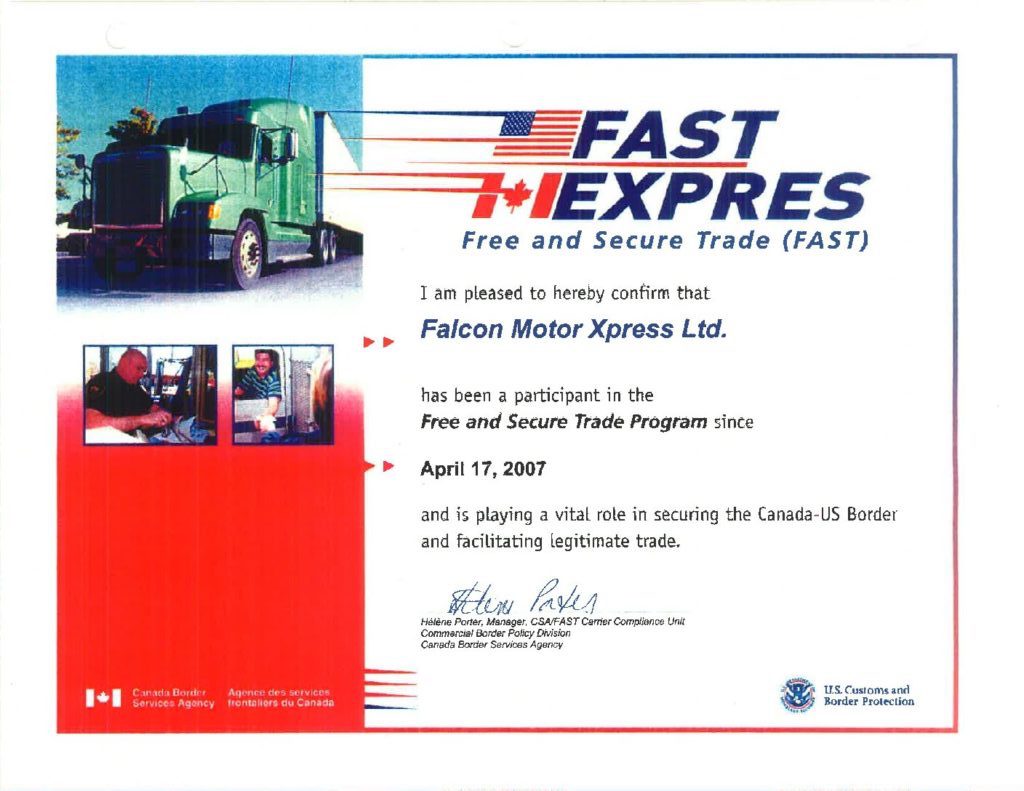 “The service we have received, and the expediting of our shipments, has been no less than excellent. I would not hesitate to recommend the services of Falcon Motor Xpress Ltd. to anyone looking for a dependable, reliable logistics partner to handle their transportation needs.”
